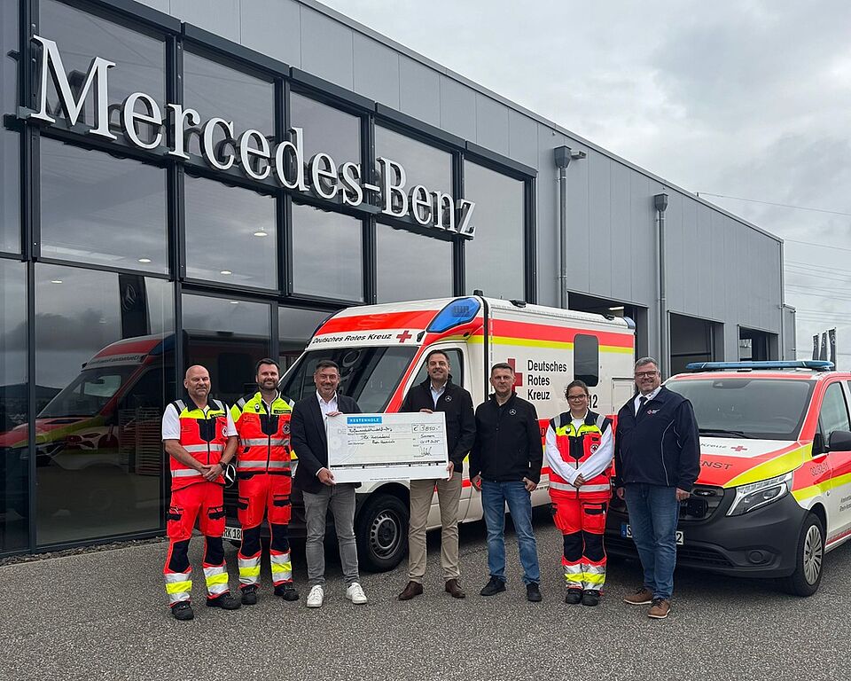 DRK-Kreisgeschäftsführer Thomas Bollig und Torsten Frenzel (Leiter Rettungsdienst) konnten diesmal einen überdimensionalen Spendenscheck über sage und schreibe 5850 Euro entgegennehmen. Und zwar aus den Händen von Betriebsleiter Marcel Maleck und Serviceleiter Saban Nesimovic von der Kestenholz Automobil GmbH.