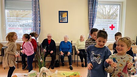 Kurz vor Ostern waren die Schüler der Rottmannschule wieder zu Besuch bei den Gästen der DRK-Tagespflege. Im Rahmen des generationsübergreifenden Projekts wurde gemeinsam gesungen und gerätselt. Die Grundschüler haben für diesen Besuch in den Räumlichkeiten der Tagespflege des DRK-Kreisverbands Rhein-Hunsrück e.V. in Simmern, Poststraße 2, extra ein Gedicht einstudiert, das unter großer Aufmerksamkeit vorgetragen wurde. Bei einer kurzweiligen Gesprächsrunde haben sich die Kinder und die Senioren darüber unterhalten, warum wir Ostern feiern und über Osterbräuche von früher und heute…